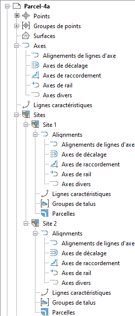 Lorsque des axes sont placés sur un site, ils interagissent avec les autres objets du site.