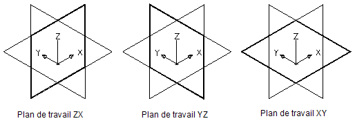 Crée les plans de construction standard du SCG ZX, YZ et XY.