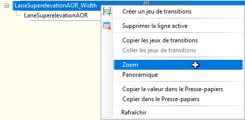 Vous pouvez cliquer avec le bouton droit de la souris sur une transition ou sur un jeu de transitions pour accéder aux commandes du menu contextuel.