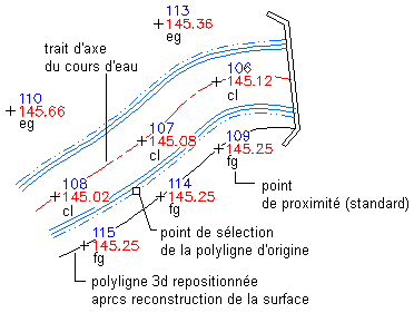 Les points de surface sont les points de données utilisés pour créer une surface triangulée proches des sommets de la polyligne que vous sélectionnez en tant que ligne de rupture.