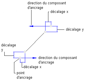 - Point de départ et Extrémité : Utilisez cette méthode pour ancrer le point de départ et l'extrémité du composant de ligne. La longueur et l'angle de la ligne sont déterminés par la position des objets d'ancrage et s'ajustent si les composants d'ancrage sont modifiés. L'illustration suivante présente une ligne définie à l'aide de cette méthode :