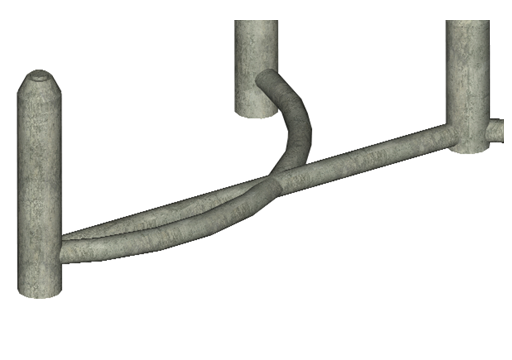 L'illustration ci-dessous montre deux réseaux de canalisations différents avec des structures se chevauchant physiquement. L'exécution d'une vérification des interférences permet d'indiquer rapidement les interférences entre ces composants.