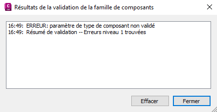 Boîte de dialogue qui s'affiche lorsqu'un composant est incorrect