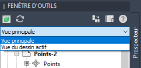 - Dans l’onglet Prospecteur de la fenêtre d’outils, cliquez sur Vue principale dans la liste déroulante.