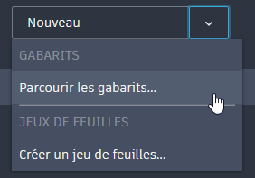 - Cliquez sur la flèche vers le bas pour afficher d’autres options permettant de sélectionner le gabarit à utiliser et de créer un jeu de feuilles.