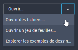 - Cliquez sur la flèche vers le bas pour afficher d’autres options permettant d’ouvrir des jeux de feuilles ou des exemples de dessins.
