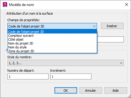 pour ouvrir la boîte de dialogue Modèle de nom.