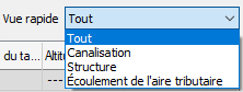 - Affiche le type de chaque structure dans le réseau de canalisations. Cliquez dans le champ pour afficher une liste déroulante permettant de modifier le type de structure.
