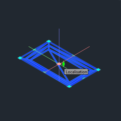 La poignée en losange vert située sur le centre du bassin permet d’ajuster l’altitude ou le décalage vertical de celui-ci. Placez le curseur sur la poignée pour sélectionner l’élévation ou le décalage. Le mouvement de cette poignée est verrouillé sur l’axe Z.