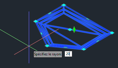 Le rayon de courbe est appliqué au sommet sélectionné sur le bassin.