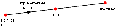 Il existe quatre points d'ancrage d'étiquette de ligne auxquels vous pouvez associer des étiquettes : points de départ, de fin et de milieu et emplacement de l'étiquette. Il est possible de faire glisser l'ancrage d'emplacement de l'étiquette sur la totalité de la longueur de la ligne.