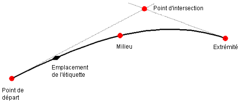 Pour les étiquettes de clothoïde, outre les points d'ancrage de début, de fin, de milieu et d'emplacement de l'étiquette, il existe également un ancrage de point d'intersection.