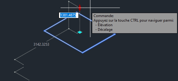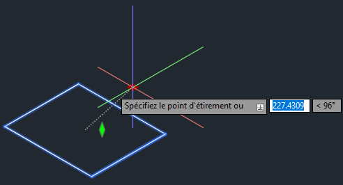 La poignée en losange vert permet d’ajuster l’altitude ou le décalage vertical du stockage souterrain. Le mouvement de cette poignée est verrouillé sur l’axe Z.
