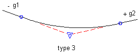 Les courbes à point bas sont placées dans les vallées ou aux endroits où le talus passe à une valeur supérieure. Il existe trois types de courbe à point bas : variation de talus négatif à positif, négatif à négatif et positif à positif :