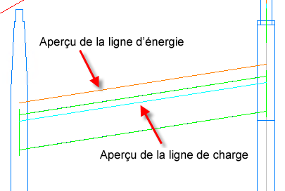 L'illustration suivante affiche un détail de la ligne d'énergie et de la ligne de charge dans l'aperçu.