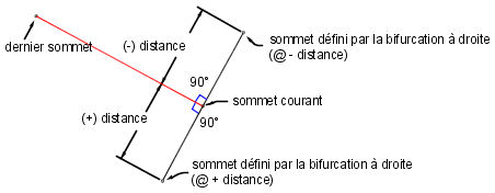 distance La distance du sommet courant vers le nouveau sommet. Entrez cette valeur dans une unité de distance de la base de données de topographie courante.