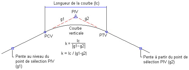 Cette valeur représente la distance horizontale le long de laquelle la courbe enregistre une variation de talus de 1 %. Elle exprime la brutalité de la variation de talus sous forme d'une seule valeur. Les tables des vitesses ou autres outils de conception fournissent souvent une valeur K minimale cible.