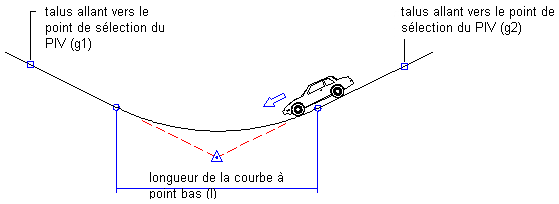 Cette méthode de conception des courbes à point bas donne une longueur de courbe minimale. La courbe doit être suffisamment longue pour que les personnes d'un véhicule standard ne subissent pas une force d'inertie excessive à la vitesse nominale.