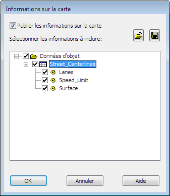 - Dans la boîte de dialogue Informations sur la carte, développez les éléments de la liste et sélectionnez Street_Centerlines.