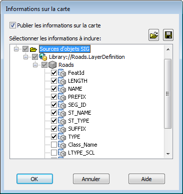 Vous allez définir les options de publication DWF qui spécifient les informations d'attribut à publier avec votre carte.