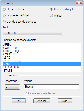 - Dans la liste Champs de données d'objets, sélectionnez NAME.