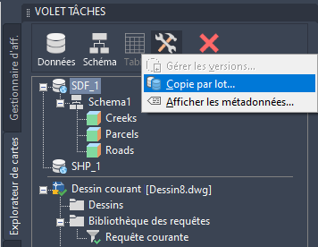 - Vous pouvez copier les données au format SDF depuis d'autres formats géospatiaux, et de SDF vers ces formats, à l'aide de la fonction Copie par lot.