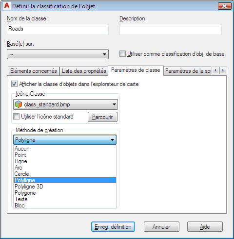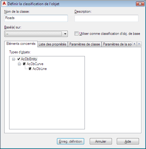 Tous les objets existants que vous ajoutez à cette classe doivent utiliser le type d'objet indiqué par la case que vous venez d'activer. A moins d'être certain que tous les objets route existants ont été créés selon la méthode AcDbLine ou AcDbCurve, il est plus sûr de ne cocher que la case AcDbEntity.