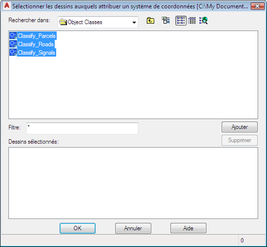 - Accédez au dossier dans lequel vous avez enregistré les données du didacticiel. Maintenez la touche Maj enfoncée, cliquez sur les dessins suivants, puis cliquez sur Ajouter :