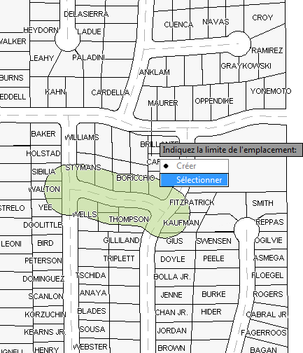 A l'invite, choisissez Sélectionner. Cliquez sur la zone tampon pour la sélectionner comme condition d'emplacement.