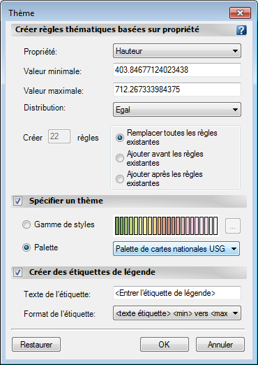 - Dans la boîte de dialogue Thème, sous Spécifier un thème, cliquez sur Palette, puis sélectionnez Palette de cartes nationales USGS.