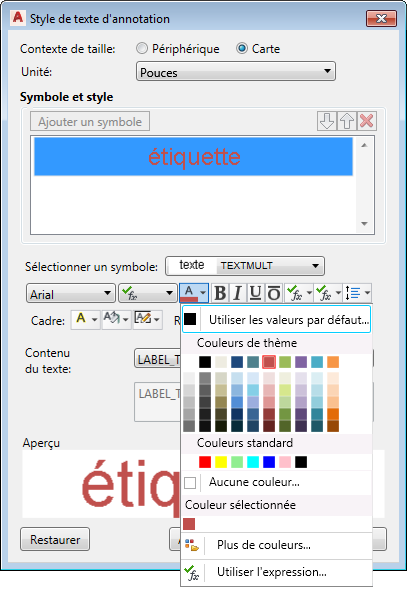 Dans cet exercice, vous allez styliser le calque afin de mettre le texte en gras et d'en modifier la couleur. Il existe de nombreux paramètres dans la boîte de dialogue Styliser le texte du calque. La plupart d'entre eux sont liés à la source de données d'objets et ne doivent pas être modifiés.