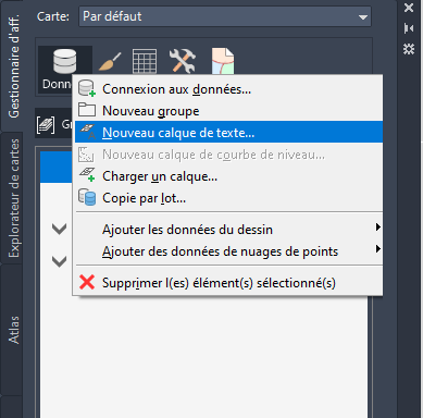 Un calque de texte se crée dans le Gestionnaire d’affichage de la même façon qu’un calque de dessin.
