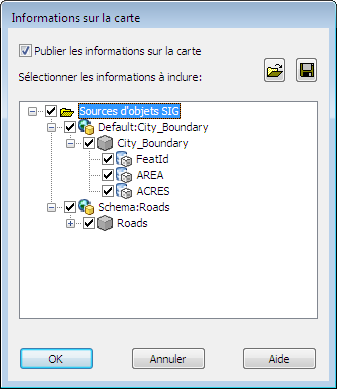 La boîte de dialogue Informations sur la carte détermine quelles données sont publiées au format DWF.