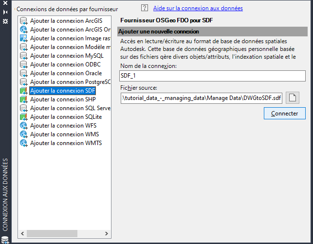 Pour se connecter au nouveau fichier SDF