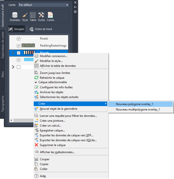 - Cliquez avec le bouton droit de la souris sur un élément de la carte.