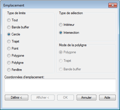 - Sous Type de limite, sélectionnez Cercle.