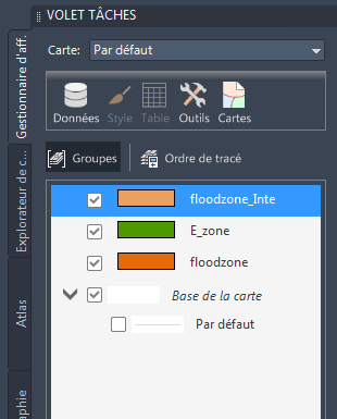 Cet exercice utilise la carte AnalyzeMapOverlay.dwg que vous avez créée dans l'Exercice 1 : Ajouter les calques à comparer.