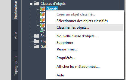 Cliquez avec le bouton droit de la souris sur la classe d’objets Signals dans l’explorateur de cartes du volet Tâches, puis choisissez Classifier les objets.
