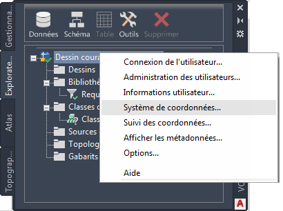- Cliquez avec le bouton droit de la souris sur le dessin courant, puis choisissez Système de coordonnées.