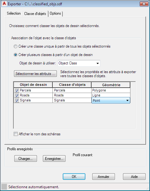 Pour procéder à une exportation vers un fichier Autodesk SDF à l'aide de classes d'objets