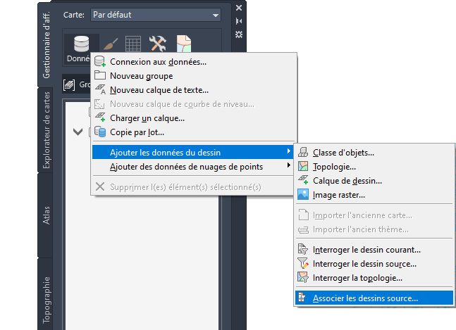 - Dans le fichier build_map1.dwg, dans le gestionnaire d'affichage, cliquez sur .