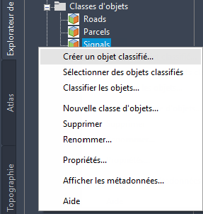 Cliquez avec le bouton droit de la souris sur la classe d'objets appropriée pour créer un objet dans cette classe.