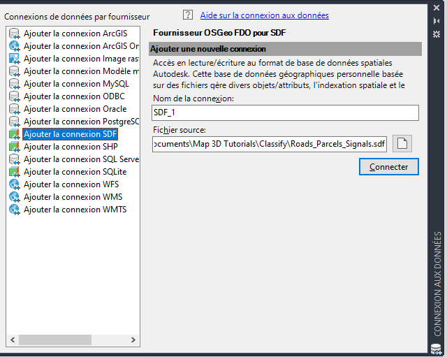 - Dans la fenêtre Connexion aux données, effectuez les opérations suivantes :