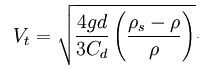A falling object will reach a terminal velocity when the weight of the object is balanced by the buoyancy and drag forces due to the surrounding fluid: