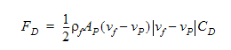 where mp is the particle mass, vp is the particle velocity, Fb is the buoyant force and Fd is the drag force calculated using: