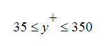 is the kinematic viscosity. Autodesk® CFD adjusts the wall effective viscosity based on the velocity and fluid properties next to the wall to enforce the Law of the Wall. With the exception of separating flow, the Law of the Wall is quite valid in the range: