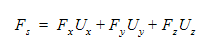 The displacement (denoted as s) is measured relative to the objects starting position. The user can define s as a function of time to move the object along the trajectory path. The trajectory is defined using a directional unit vector (Ux, Uy, Uz). The motion as defined in the global coordinate system is: