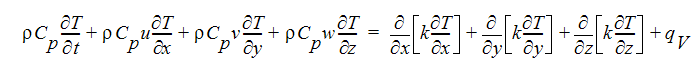 The governing equations for fluid flow and heat transfer are the Navier-Stokes or momentum equations and the First Law of Thermodynamics or energy equation. The governing pdes can be written as:
