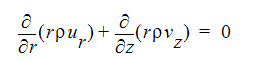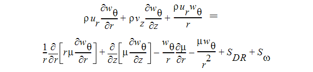 For axisymmetric geometries and steady-state conditions with swirl velocity component (out-of-plane component), these equations can be written as: