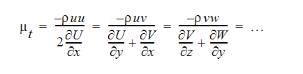 CpwT. Additional equations can be derived for these last 9 extra terms by taking moments of the above equations. However, the process of taking moments of these equations will introduce still more unknowns. This closure problem can continue ad infinitum. At some point, the decision must be made to stop creating equations (and thus new terms) and find a way to “model” the extra terms; i.e., relate these terms back to the previous unknowns. At the zeroth level of closure, the Reynolds stress terms are linked to the mean values of the dependent variables, U, V, W, T.